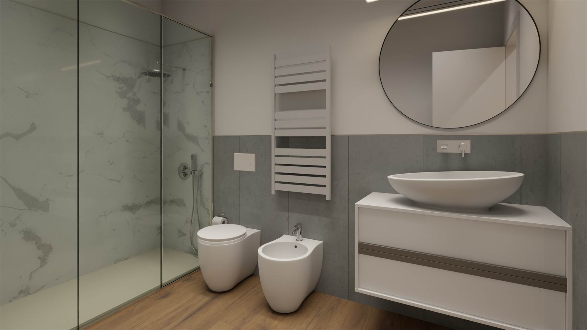 Riscaldamento e raffrescamento autonomi a pompa di calore, con cronotermostato digitale e termoarredo in bagno;
