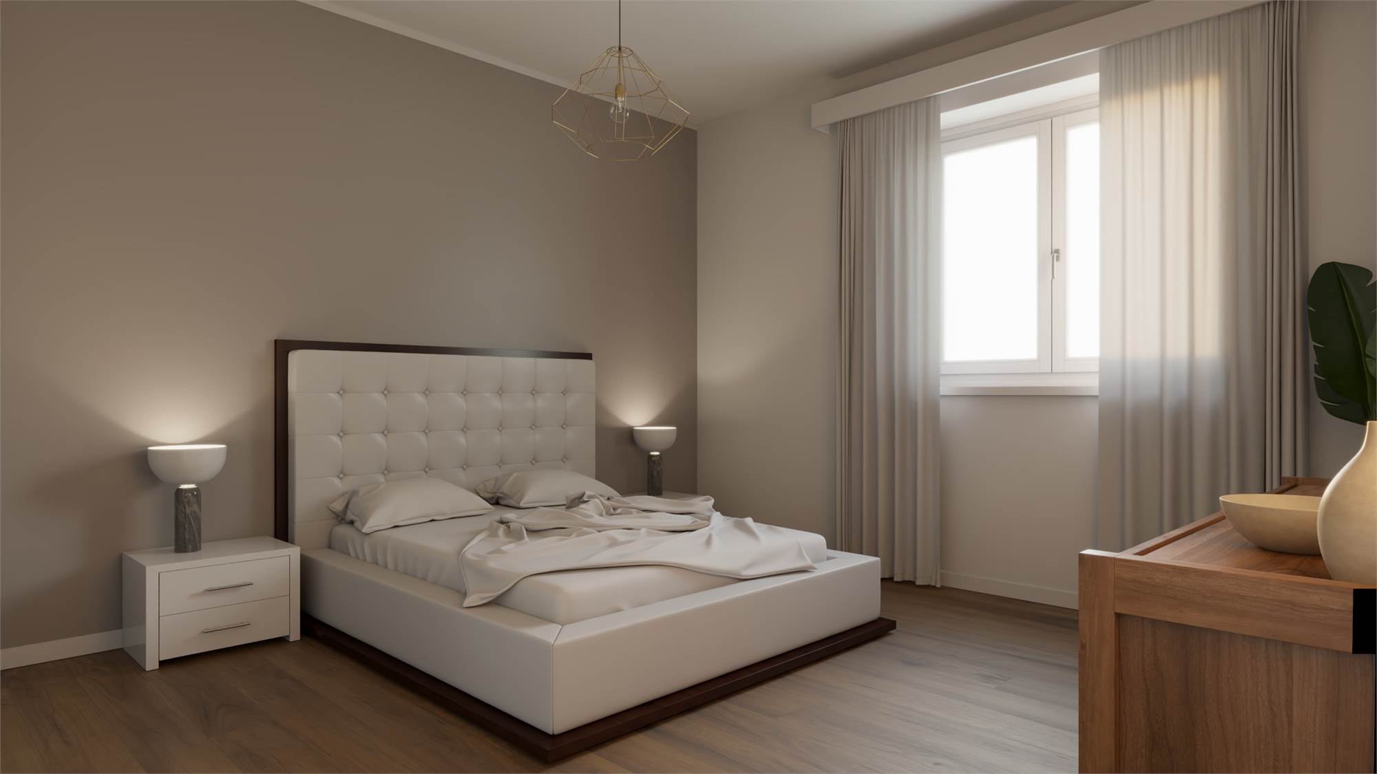 L’appartamento, frutto di un accurato frazionamento e di una ristrutturazione completa con materiali di pregio, offre spazi armoniosi e ben distribuiti: